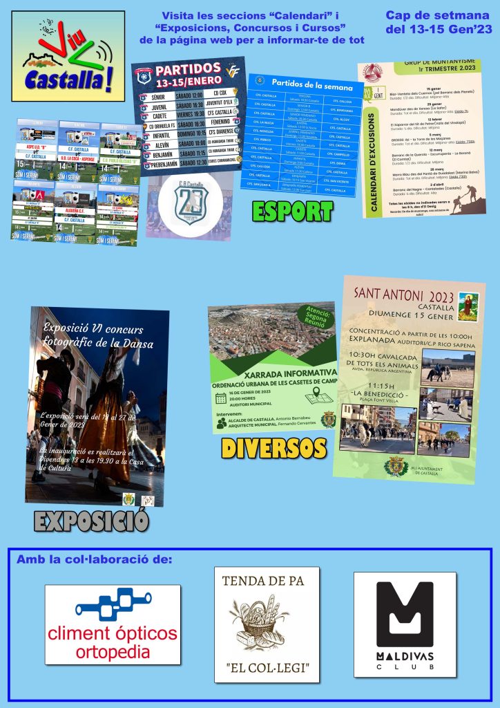 Publicado el 13 enero, 202313 enero, 2023 por ViuCastalla13-01-23: Noves activitats d’ESPORT, MÚSICA i DIVERSOS i Cartell Setmanal Publicades noves activitats per a aquest cap de setmana a la secció «Calendari» de la web. Entra i informa’t de tot!