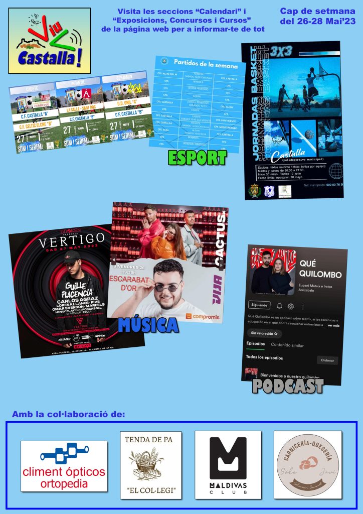 Publicado el 26 mayo, 202326 mayo, 2023 por ViuCastalla26-05-23: Noves activitats d’ESPORT, MÚSICA, DIVERSOS i CAMPUS Publicades noves activitats per a les pròximes setmanes a les seccions «Calendari» i «Exposicions, Concursos i Cursos» de la web. Entra i informa’t de tot!